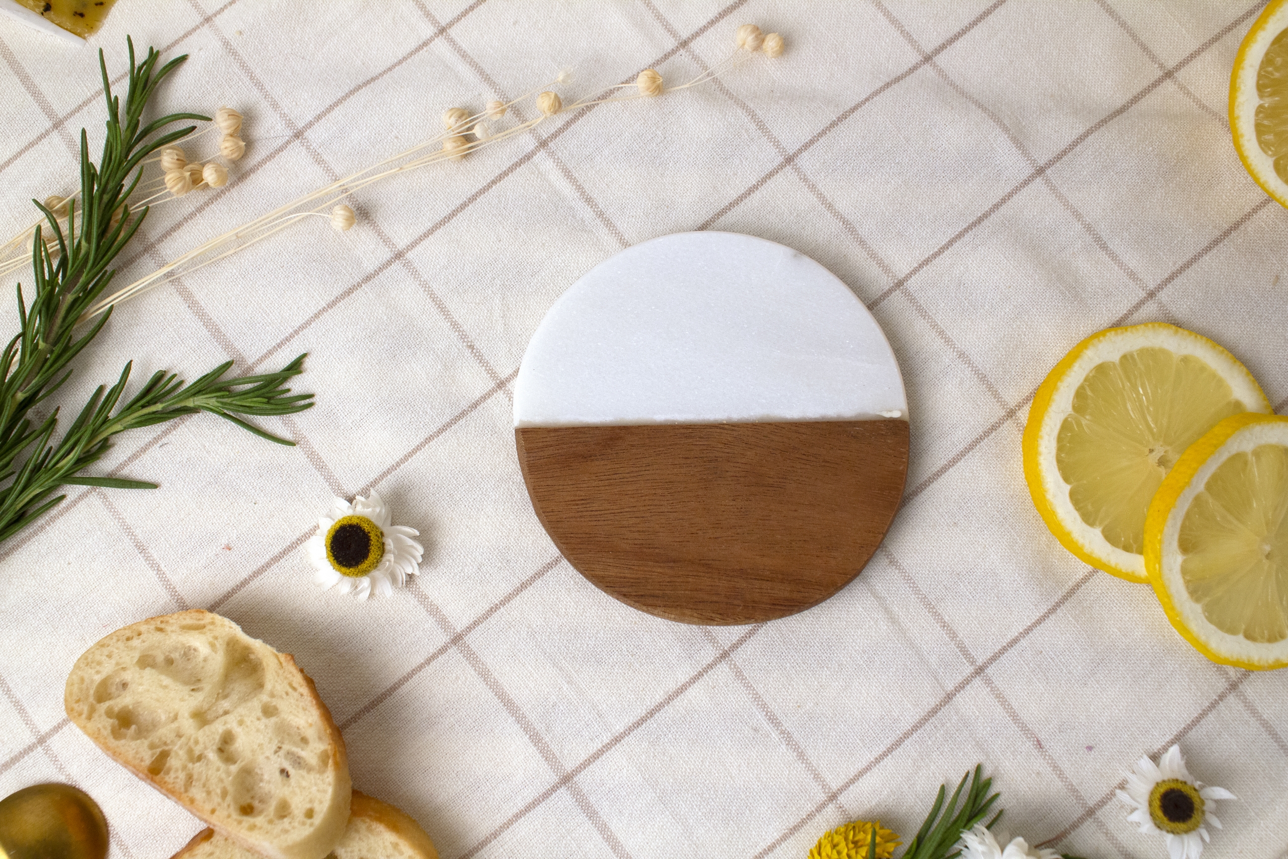 A set of premium quality marble & wood coasters, engraved to keep special memories always within reach.